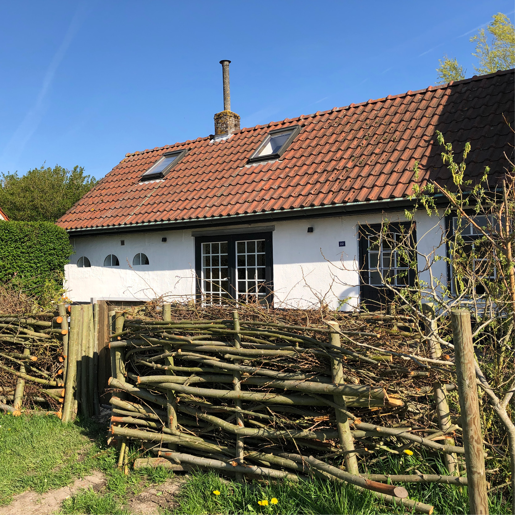 Ons vakantiehuisje is ongeveer honderd jaar geleden gebouwd in de oude dijk langs de Schelde.